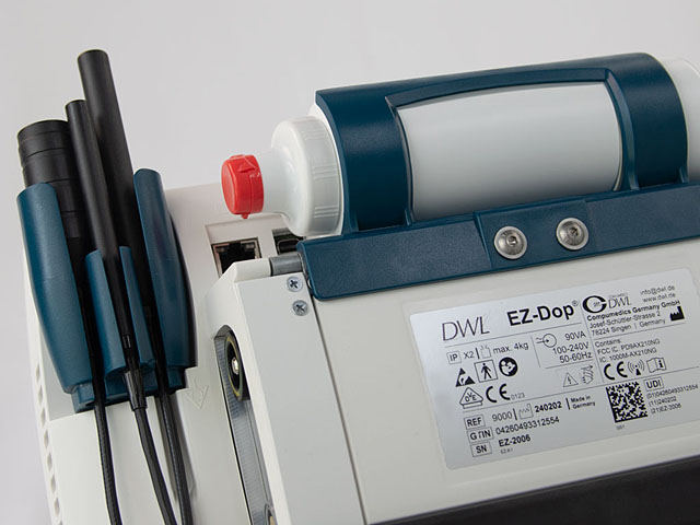 Digitální DWL® Dopplerovské zařízení s rutinním softwarem včetně Doppler M-Mode, dotykové obrazovky, držáku sond, napájecího kabelu, držáku na gelovou lahvičku.